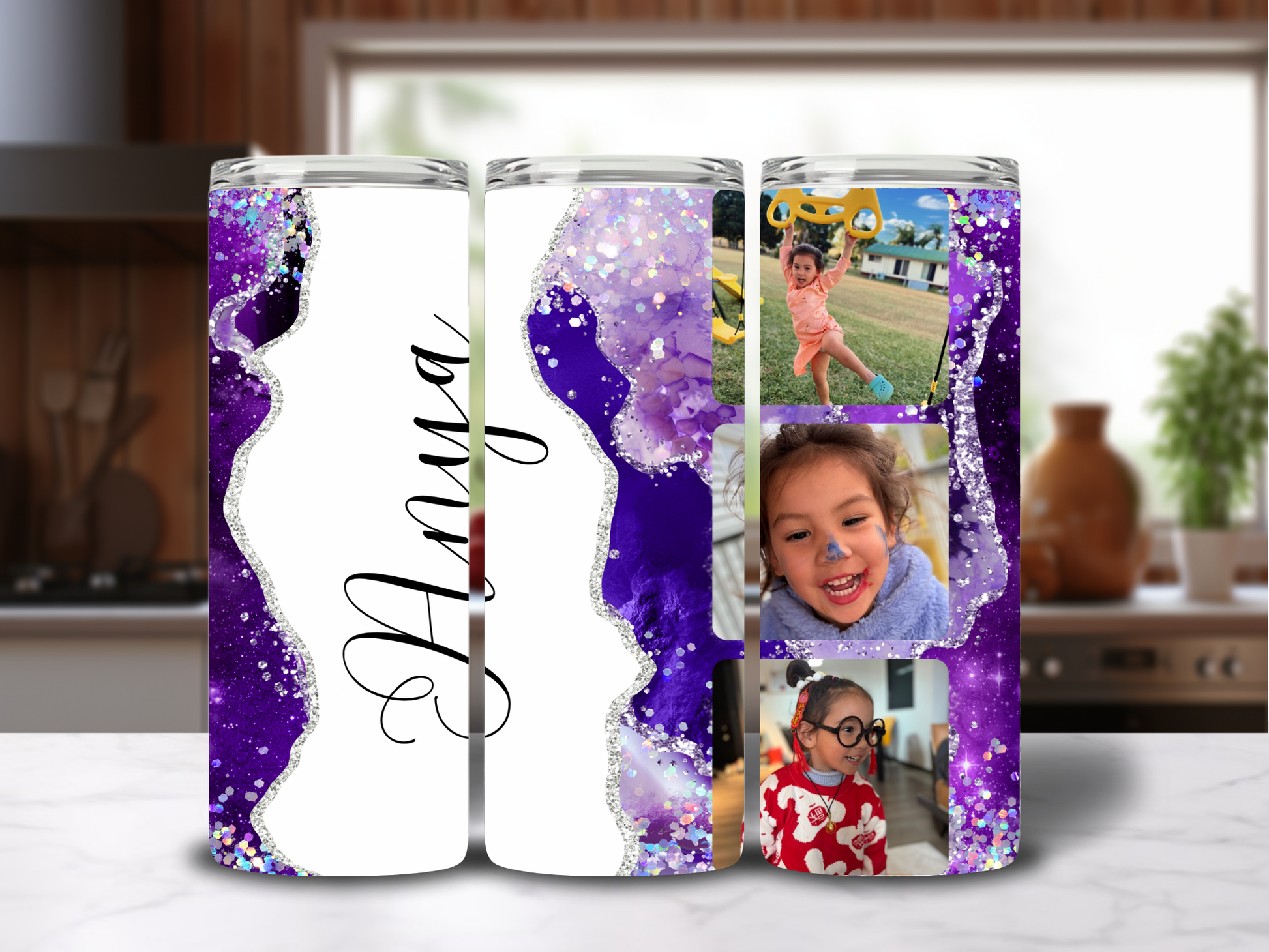 Custom 3 Photo and Name 20oz Tumbler