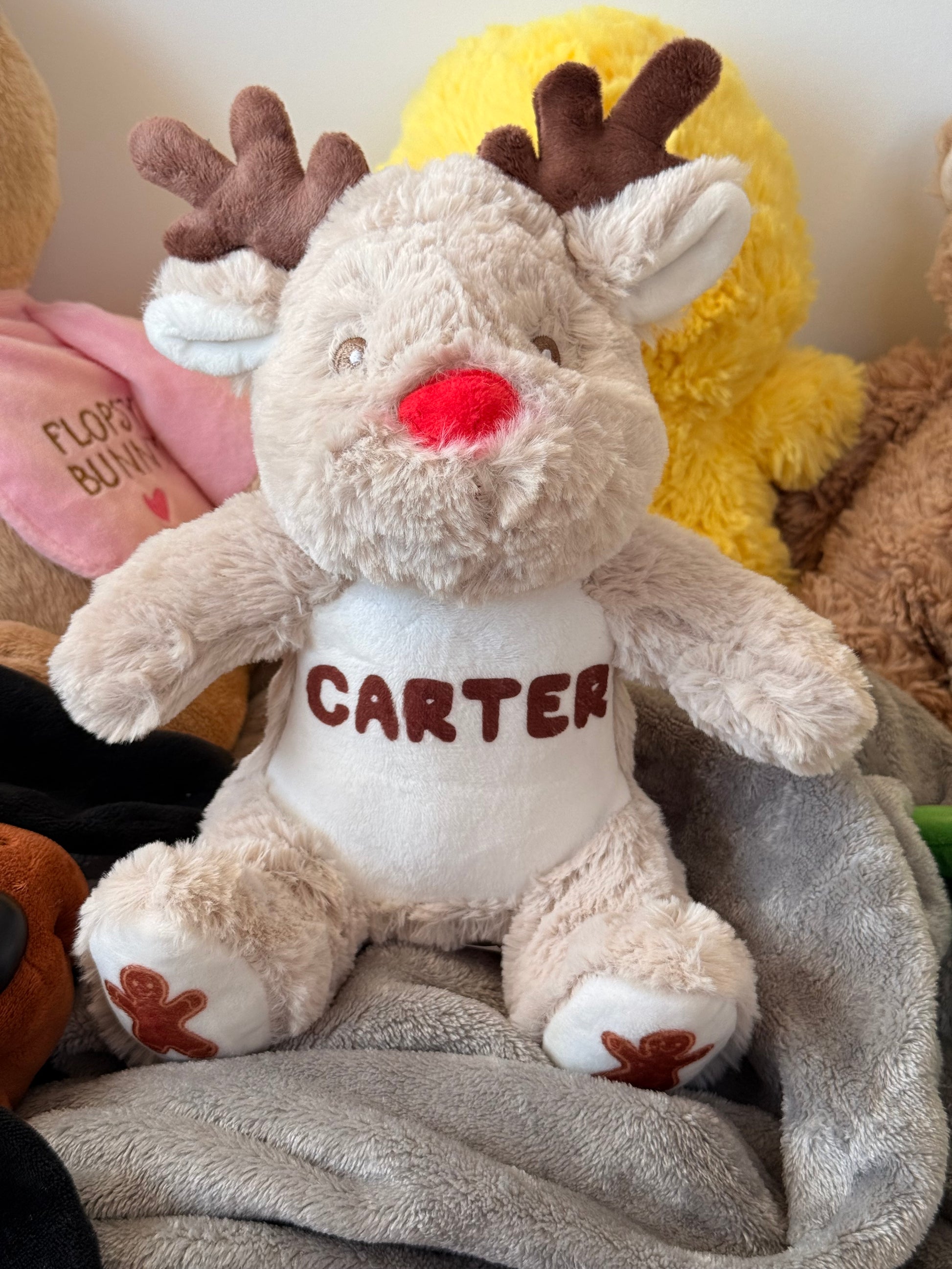 Whether it's a holiday surprise, baby announcement, remembrance gift, or something just because – this reindeer is made to mean something special.